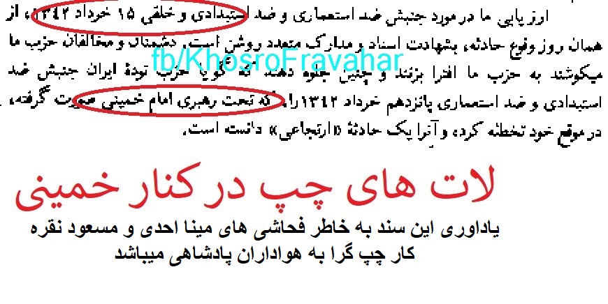 اگر شما گرامی فکر میکنید با یک مشت کمونیست و مصدق اللهی با افکار سال ۵۷ مردم را در کنار خود جمع خواهید کرد, عزیز من باید بگویم اشتباه میکنید. اگر یار شما خانم مینا احدی مصدق را با هیتلر مقایسه کرده بود به ایشان تذکر نمیدادید که این حرف ها جایش در یک جلسه سیاسی برای همبستگی نیست!