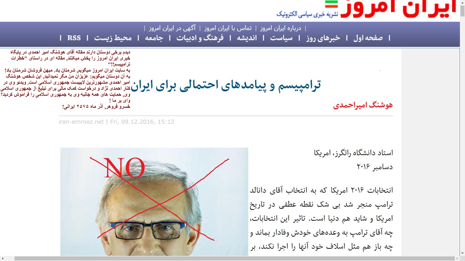 دیدم برخی دوستان دارند مقاله آقای هوشنگ امیر احمدی در پایگاه خبری ایران امروز را پخش میکنند, مقاله ای در راستای “خطرات ترامپیسم”!!