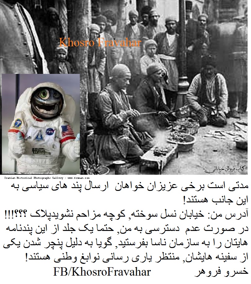 در صورت عدم دسترسی به من, حتما یک جلد از این پندنامه هایتان را به سازمان ناسا بفرستید, گویا به دلیل پنچر شدن یکی از سفینه هایشان, منتظر یاری رسانی نوابغ وطنی هستند!