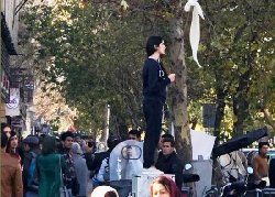 دختری که اوایل دی ماه در تقاطع خیابان انقلاب و وصال تهران روسری سفیدش را از سر برداشت و آن را بر سر چوب گرفت، احتمالا در زندان اوین است. نسرین ستوده وکیل دادگستری پیگیر وضعیت این زن جوان است.