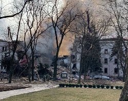 تصاویری که از داخل سالن تئاتر منتشر شده است، ویرانی ناشی از آنچه مقامات محلی گفتند حمله در ۱۶ مارس انجام شد در حالی که صدها نفر در داخل ساختمان پناه گرفته بودند را نشان داد.