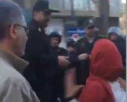 فریاد مرگ بر خامنهای یک زن شجاع در کرمانشاه در مقابل ماموران حکومتی