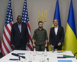 ولودیمر زلنسکی، رئیسجمهور اوکراین در دیدار با وزرای خارجه و دفاع آمریکا، از رهبری جو بایدن، رئیسجمهور آمریکا و سخاوت ایالات متحده در قبال اوکراین قدردانی کرده و درباره نیازهای کشورش برای مقابله با تجاوز روسیه توضیح داده است.